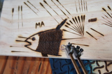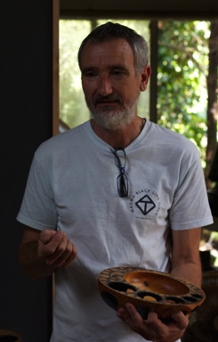 Graeme started with a simple and excellent design exercise to get ideas happening then demonstrated using hand and power tools for incising and carving patterns and textures, as well as innovative use of pyrography, and how milk paints and acrylic paints and burning can all highlight the form and the wood, and generally make each piece distinctive.